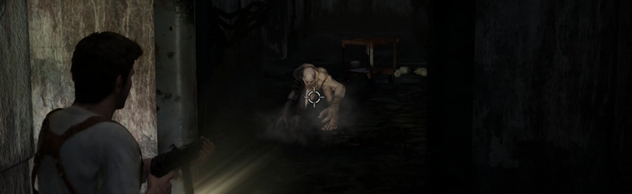 Before The Last Of Us was a glint in Naughty Dog’s eye the closest the publisher had ever come to zombies/mutants/monsters that want to rip your face off, was in Uncharted Drake’s Fortune. What starts off as a pretty bog standard platforming level quickly turns into more of a survival horror affair as Drake finds himself battling against monsters with only torch light and a machine gun to keep him company. It’s an adrenaline fuelled chapter where players will more than likely be caught off guard by a cavalcade of howling zombie dogs.