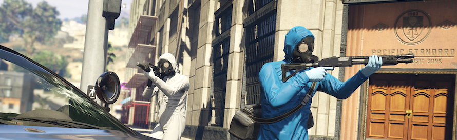The final heist from the initial update is a big one, as you rob The Pacific Standard Bank in the centre of town. For setup, you’ll need to hijack an armoured convoy and steal a set of powerful motorbikes to escape with the dyed dosh. Then the main event has you controlling a crowd of people while your friends hack and blow up the vault.