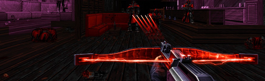 Though the usual selection of handguns, shotguns and automatic weapons are all available, Ion Fury has its own line in exotic destructive gear with a triple-barrelled pistol, a homing bowling ball hand-grenade and an electrically charged tonfa baton to name just a few of the more unusual weapons you can use to turn your foes into a fine red mist.