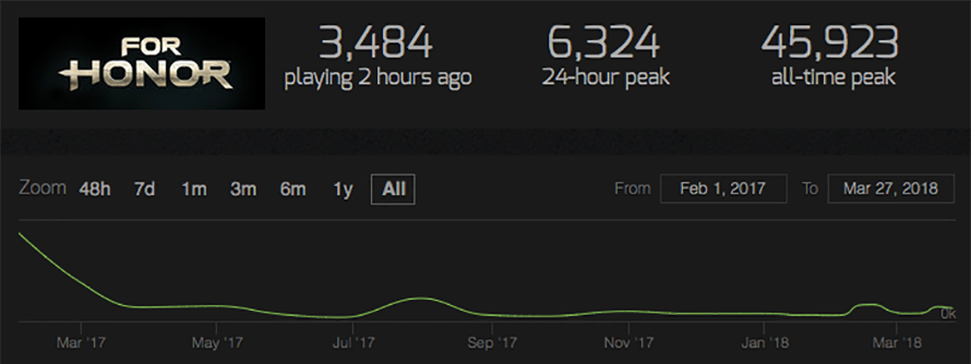 Despite this, August saw the biggest spike in For Honor players since launch, reaching 11,359 concurrent players. Compare this to the previous month’s 1,941 peak, and you could argue that the pull of For Honor is still a strong one in the mind of the gaming world. We want it to work, we want it to be good. We want to be good.