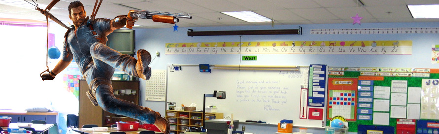 Rico brings his trademark scorpion action to the classroom as he grapples with the problems of childhood illiteracy. Instead of bringing chaos to the streets, play as Rico as he stops chaos in the school. Will the forces of illiteracy prevail, or will he parachute smarts into young brains? Find out in Just Cause 5: Books Bring Brains.