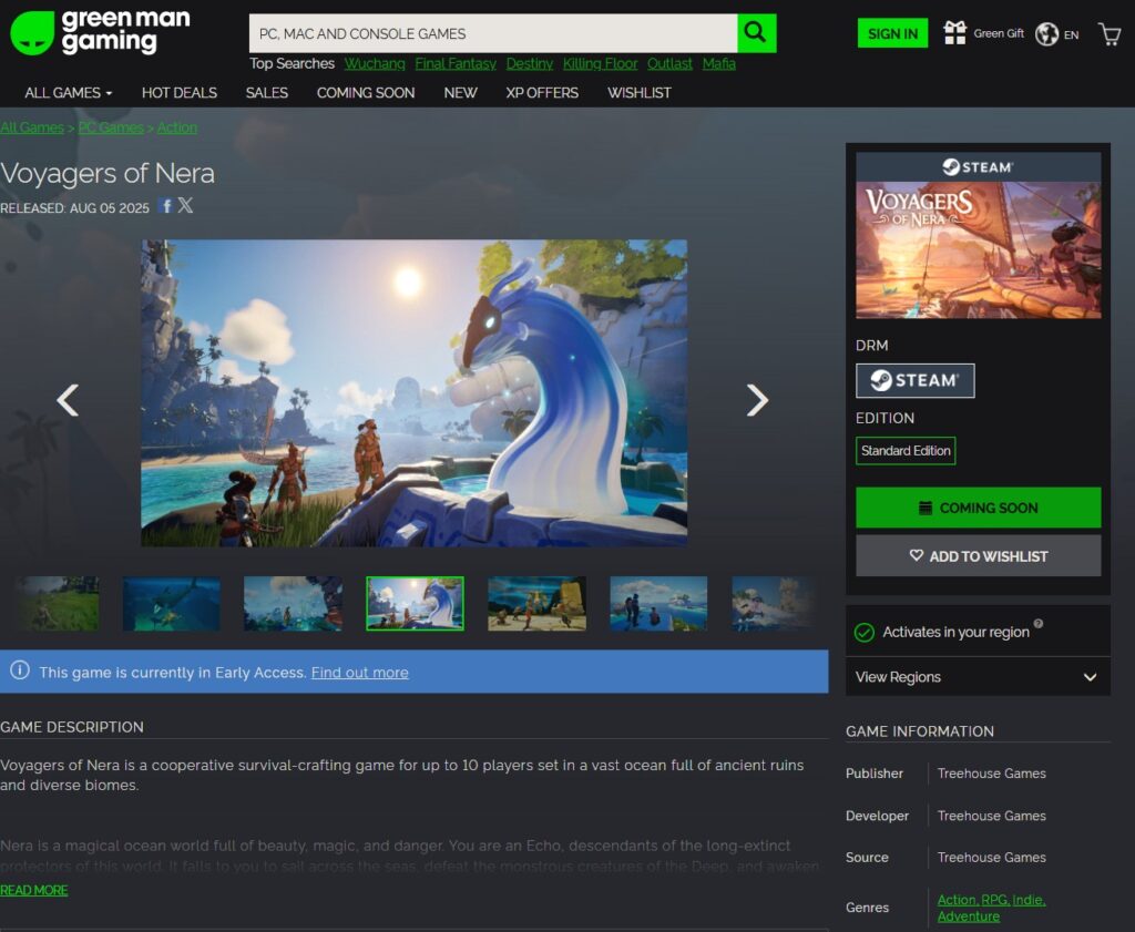The game was displayed on the Green Man Gaming Store