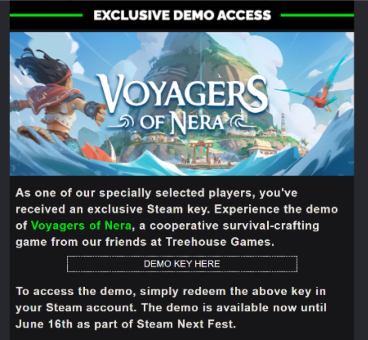 Over 150,000 players we're sent an email which contained a free beta Steam key and highlighted all the core personas and USPs of the game.